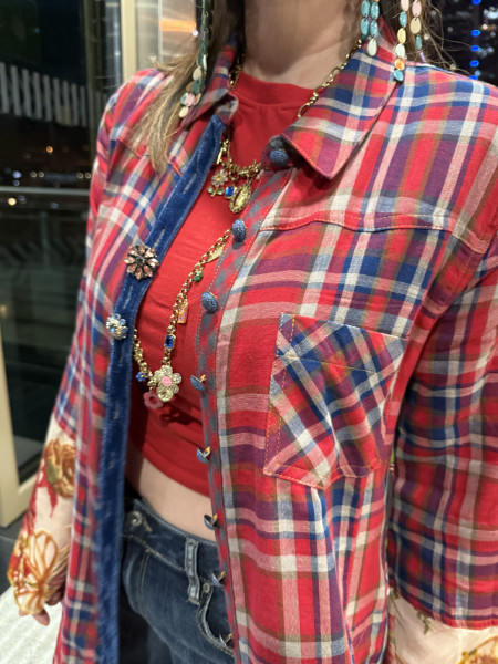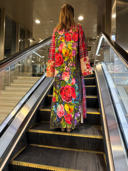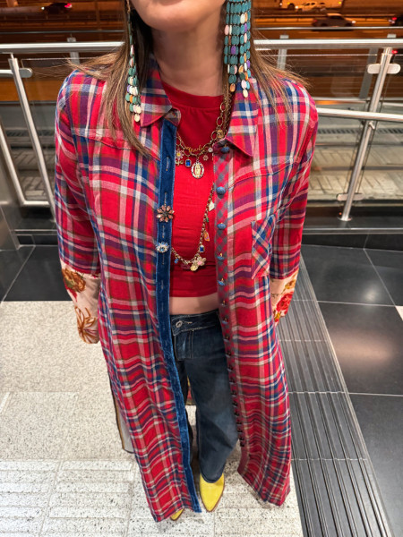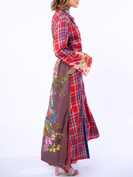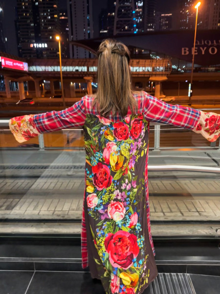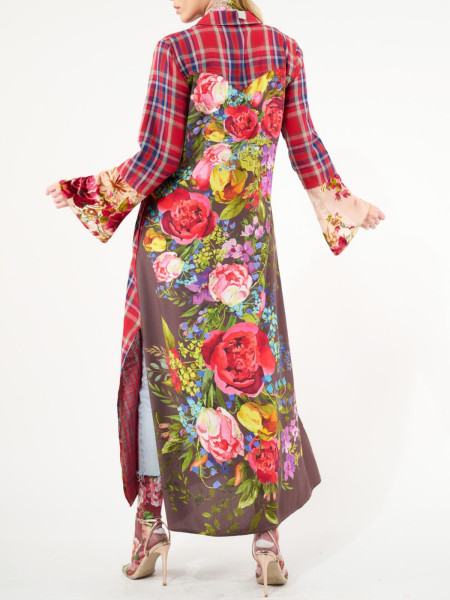 Chemise à carreaux longue avec ses manches et son dos tout en fleurs.
