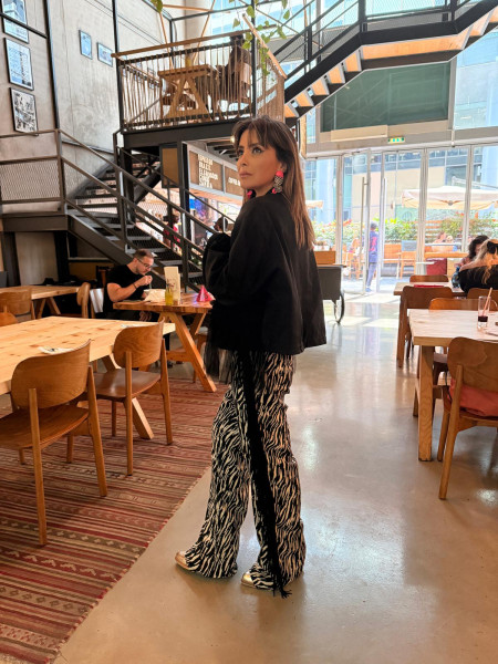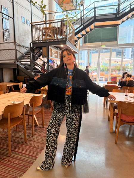 Audace stylistique : une pièce unique combinant le nylon noir, un empiècement denim et des volants en tulle pour un look ultra-tendance et texturé.