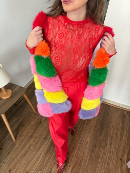 Délicatesse et caractère se rejoignent dans ce top en dentelle. Disponible en rouge passion ou en jaune éclatant, il présente des motifs floraux ajourés pour un jeu de transparence raffiné. Parfait sous une veste ou porté seul pour une allure romantique.