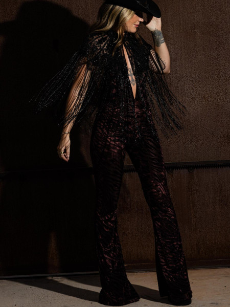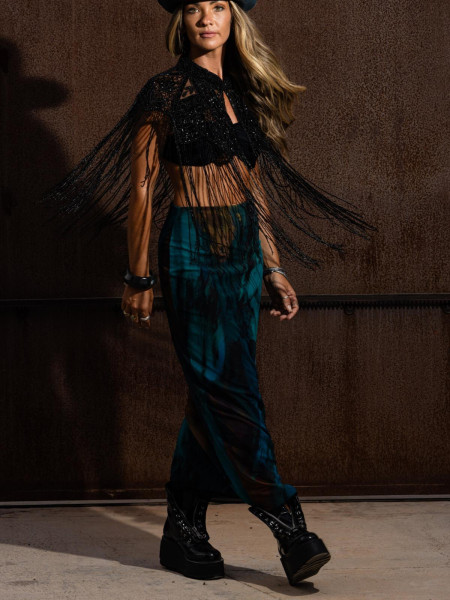 Cette cape en perles de verre noires joue sur la texture et les reflets sombres pour une élégance tout en retenue. Elle apporte du relief et de la structure à vos tenues de soirée sans en casser l'harmonie. Un classique indémodable du vestiaire nocturne qui traverse le temps avec grâce.