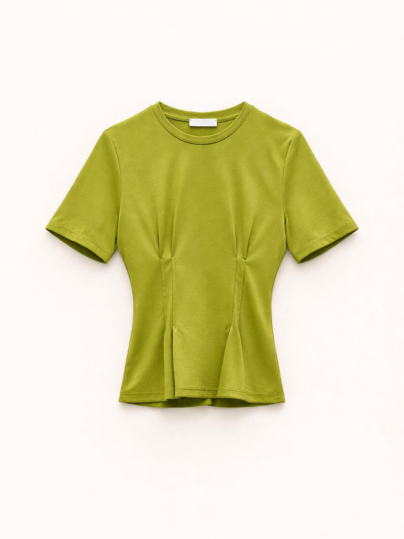 Le top pincé se distingue par son jeu de plis délicats qui structurent la silhouette. Un haut léger et raffiné qui apporte une texture subtile et un relief élégant à vos tenues de bureau ou de sortie.