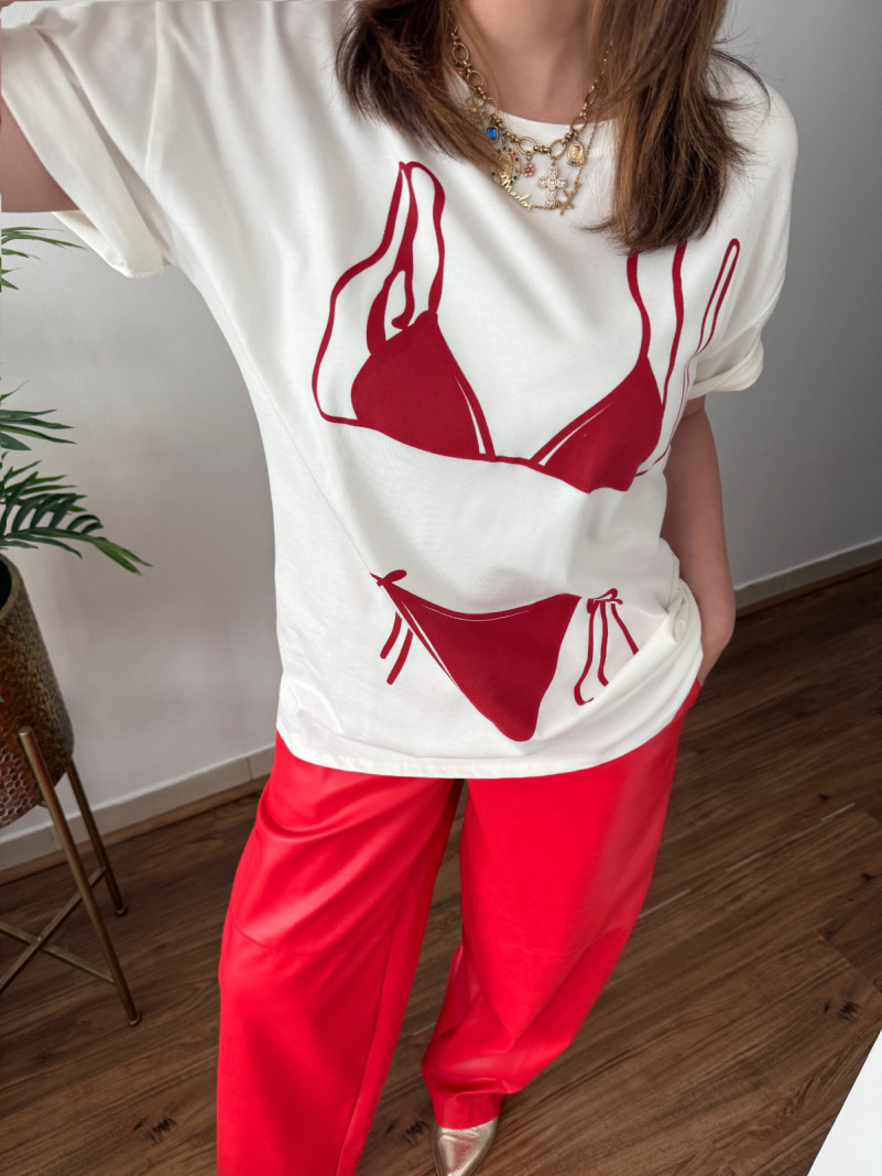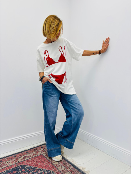 Humor and style meet in your wardrobe with the Bikini T-shirt. Its playful trompe-l'œil print is perfect for a casual look that doesn't take itself too seriously. A sunny-day essential.