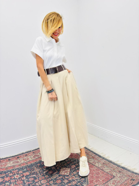 Minimalist elegance is personified in this beige dress with its natural, soothing tones. Its timeless sand hue makes it the perfect blank canvas to express your style through accessories. The fluid cut ensures total freedom of movement and unparalleled comfort, whether for a workday or a casual outing. It is the ultimate "easy-chic" piece that moves through the seasons with absolute grace.